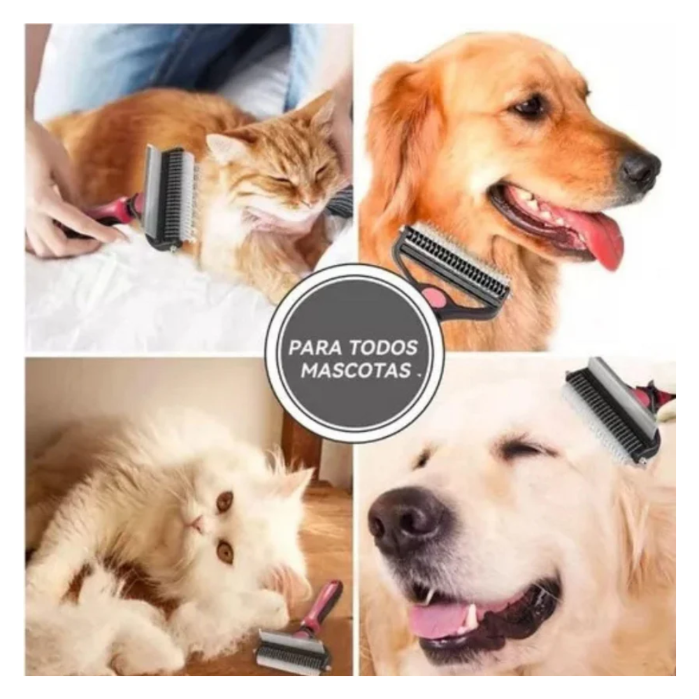 Cepillo Mascotas Doble Cara Remocion Pelo Masaje Ergonomico Deslizante