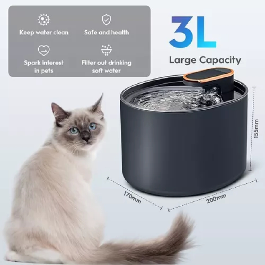 Capacidad Generosa de 3 Litros: Con una capacidad amplia, esta fuente es perfecta para hogares con una o varias mascotas. Evita la necesidad constante de recargar y asegura que haya suficiente agua disponible en todo momento.